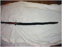 Fire Sword – Sorry that is it all black. It has been used quite a bit. The 34" sword is a hard wood practice sword that has been wrapped in aluminum tape (I have used it in over a dozen performances and although from time to time I can smell the wood, there has been no degradation of the piece in any way). Wire reinforced wicking extends along one edge from the tip to 4" above the crossguard. The wicking is secured via framing wire that wraps around the backside of the blade. The crossguard is made of aluminum to keep the heat at bay. Note! This is a very dangerous device to use as the flames can easily glide up the sword to your arm in any number of movements. I have lost the hair of my forearm quite a few times due to this piece. The cost of this piece is $75 – due to the quality of the parts used.